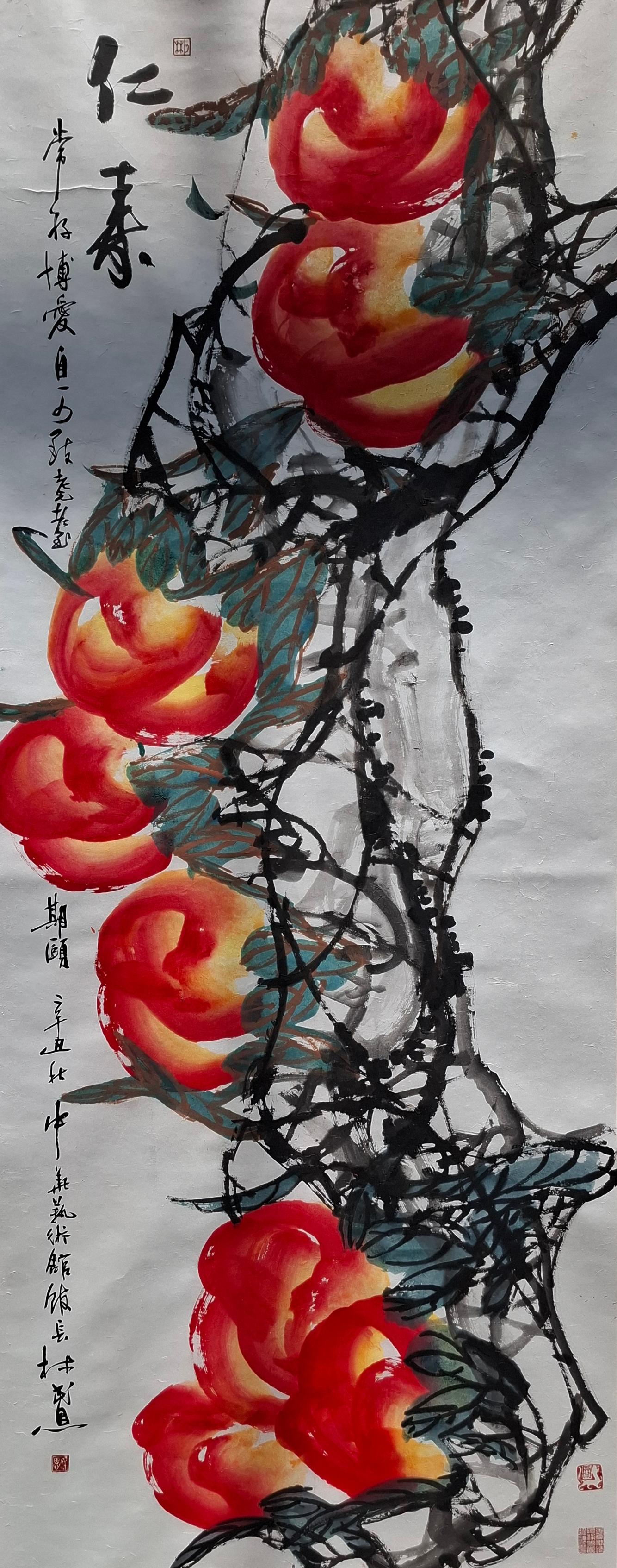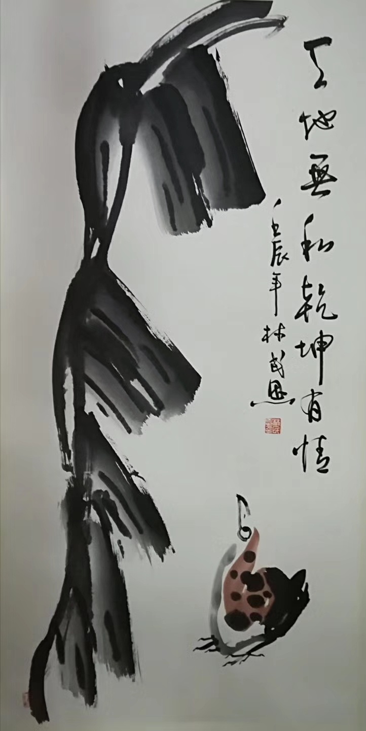 林民恩,号蜗牛国王,潜心钻研儒、道、佛、耶、回五教真理,恪守古法制艺,于传统艺术领域深耕不辍。其国画创作尤重笔墨气韵,作为齐白石先生第四代嫡传弟子,擅长大写意墨竹与寿桃,笔下作品兼具传统风骨与个人意趣,尽显东方写意美学精髓;书法亦有涉猎,工于行楷与榜书,为其艺术创作奠定深厚传统根基。