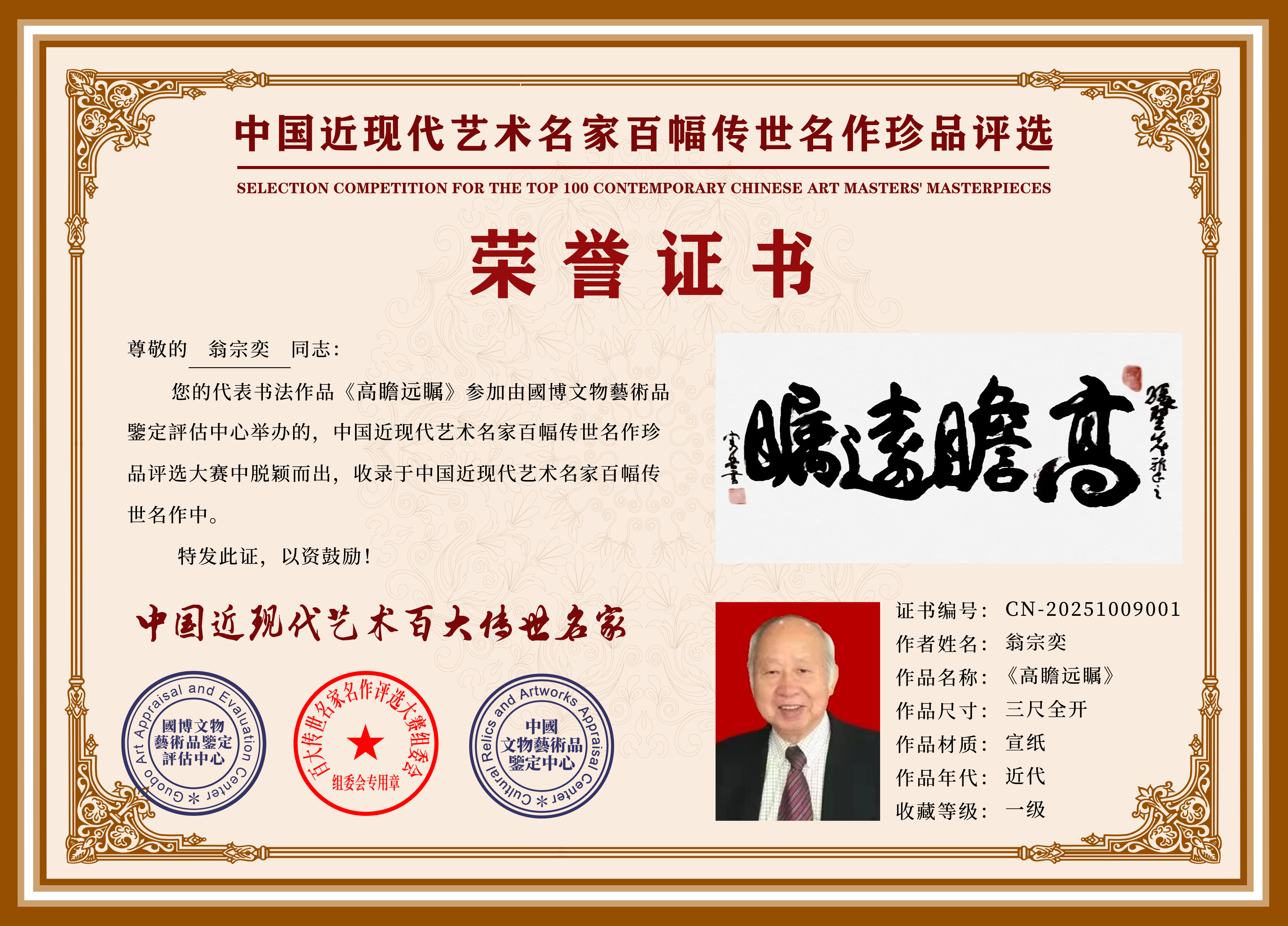 翁宗奕,广州医科大学教授,国家特级书法师、当代中国首席民间艺术家。现任北京中宣盛世国际书画院研究员,中国楹联学会书画研究会特聘书法家、中国文联德艺双馨艺术家,香港艺术交流大使,澳门文化形象大使。受聘阿里巴巴国际书画研究院终身名誉院长,中国国际艺术委员会委员。